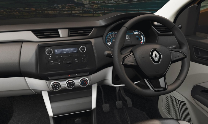 Step inside the new Renault Triber Express and discover a refreshed, modern interior. The dual-tone design and elegant trim create a warm, inviting atmosphere, while the sleek centre fascia adds a touch of sophistication. Designed for space and comfort, the Triber Express includes an LED instrument cluster, dual independent air conditioning controls, front electric windows, and the Connect R&Go® radio system with a USB port as standard.