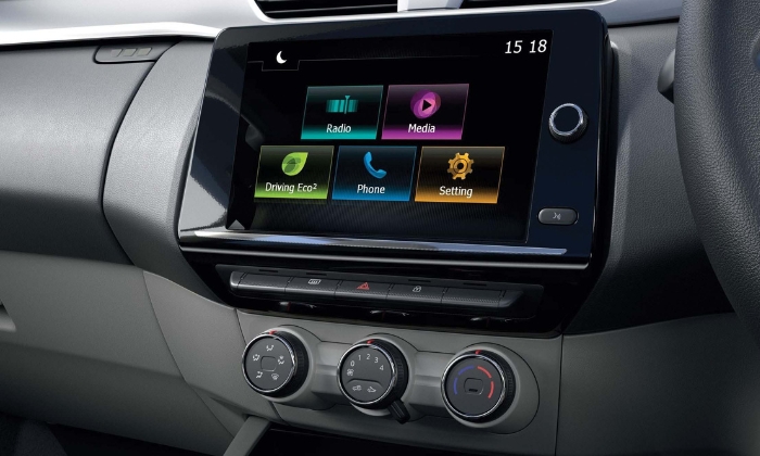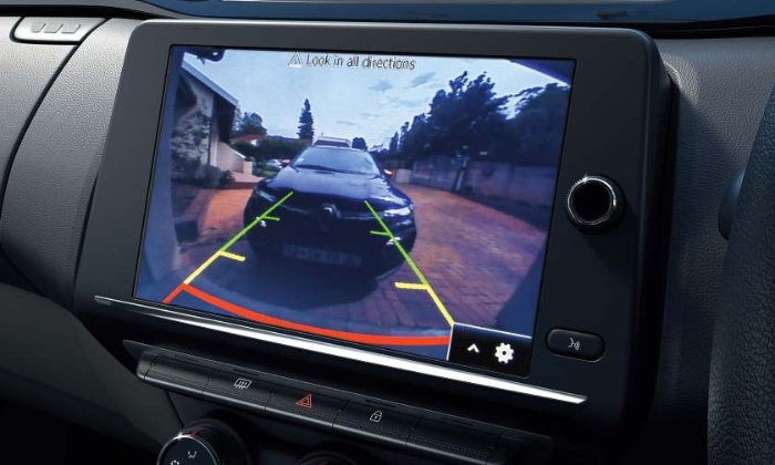 The Renault Triber features a fully digital instrument cluster with LED illumination, a digital tachometer, and a gear shift indicator to help optimize fuel efficiency. The onboard computer provides key driving information like fuel consumption and distance to empty. Its user-friendly 8” MediaNav Evolution touchscreen includes Apple CarPlay®, Android Auto™, voice commands, and video playback. Adding to the convenience are the smart access card with keyless entry and a push start-stop button for a seamless driving experience.